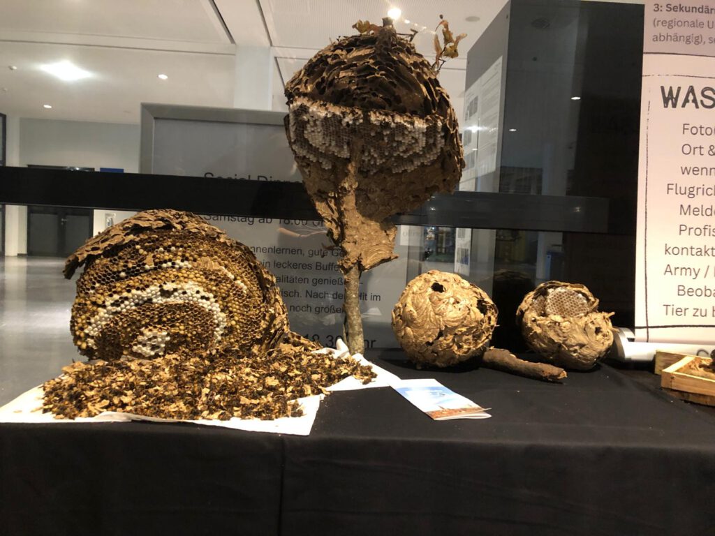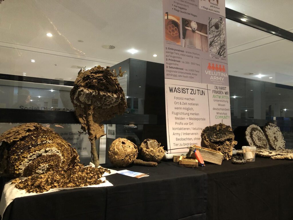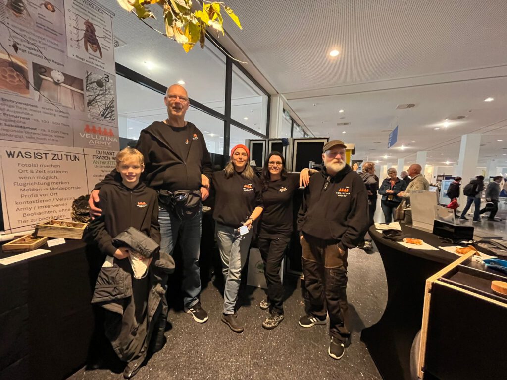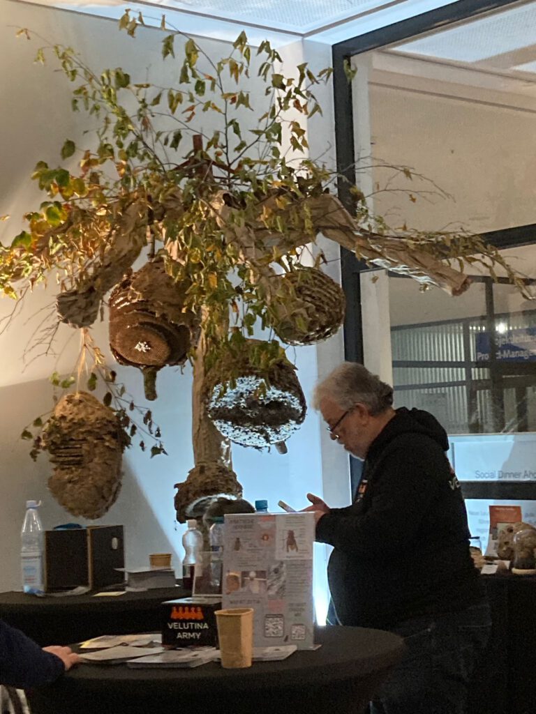 Unser Stand bot drei Tage lang reichlich Exponate, fundiertes Wissen, Infomaterial lag bereit, Ansprechpartner/innen aus der ersten Reihe der Army Redaktion und aus der Bekämpfung gaben Auskunft und Einblick – vernetzen und kennenlernen, Infos geben, Fragen beantworten, Verstehen für das Wesen Vespa velutina nigrithorax wecken, gute Gründe aufzeigen, warum es sich lohnt, sich mit Vespa velutina zu beschäftigen und die Bekämpfung ernst zu nehmen.