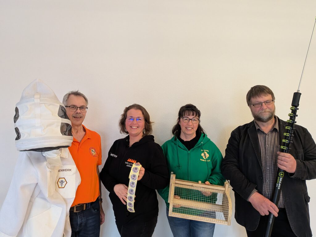 Frühjahreszeit ist Arbeitszeit für die Ehrenamtler/innen, die sich Aufklärung rund um das Thema Vespa velutina nigrithorax auf die Fahne geschrieben haben. Das Leben findet für uns nicht nur in der WhatsApp-Gruppe statt. Wir bekommen dieses Jahr offenbar reichlich Gelegenheit, das Thema auf verschiedensten Veranstaltungen und Messen persönlich sichtbar zu machen. Also nutzen wir das. Wir sprechen stellvertretend für Veranstaltungen von motivierten und fachkundigen Menschen hier ein paar wenige von unseren Terminen kurz an. Menschen reisen durch das Land, um ihre Informationen zum Thema zu teilen. Drum hört zu wenn jemand vor Ort ist und berichtet ………….