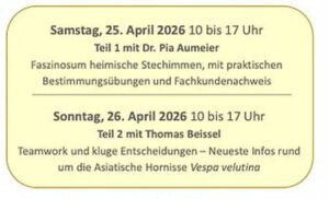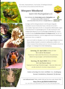 Der Kreisimkerverein Ruhrgebiet Witten e.V. läd ein zum Wespen (und Hornissen) – Weekend Sa. 25. Apr. + So. 26. Apr. 2026