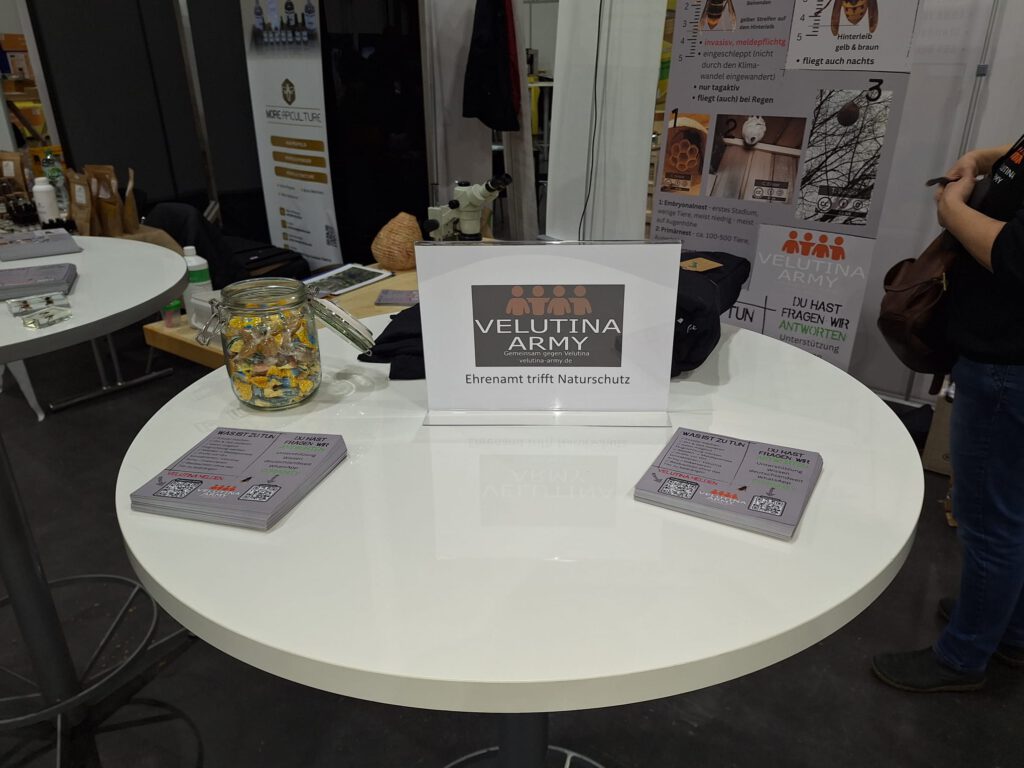 Wie zuvor auf vorangegangenen Messen könnt Ihr erwarten: neue Exponate zu Ansicht mit Nest und Tier, breit aufgestelltes Wissen rund um die Vvn, anschauliches Informationsmaterial. Ansprechpartner/innen aus der Army Redaktion und aus der Bekämpfung geben Auskunft und Einblick. Die Velutina Army vernetzt und steht bereit, Fragen zu beantworten und Ansprechpartner/innen zu finden.